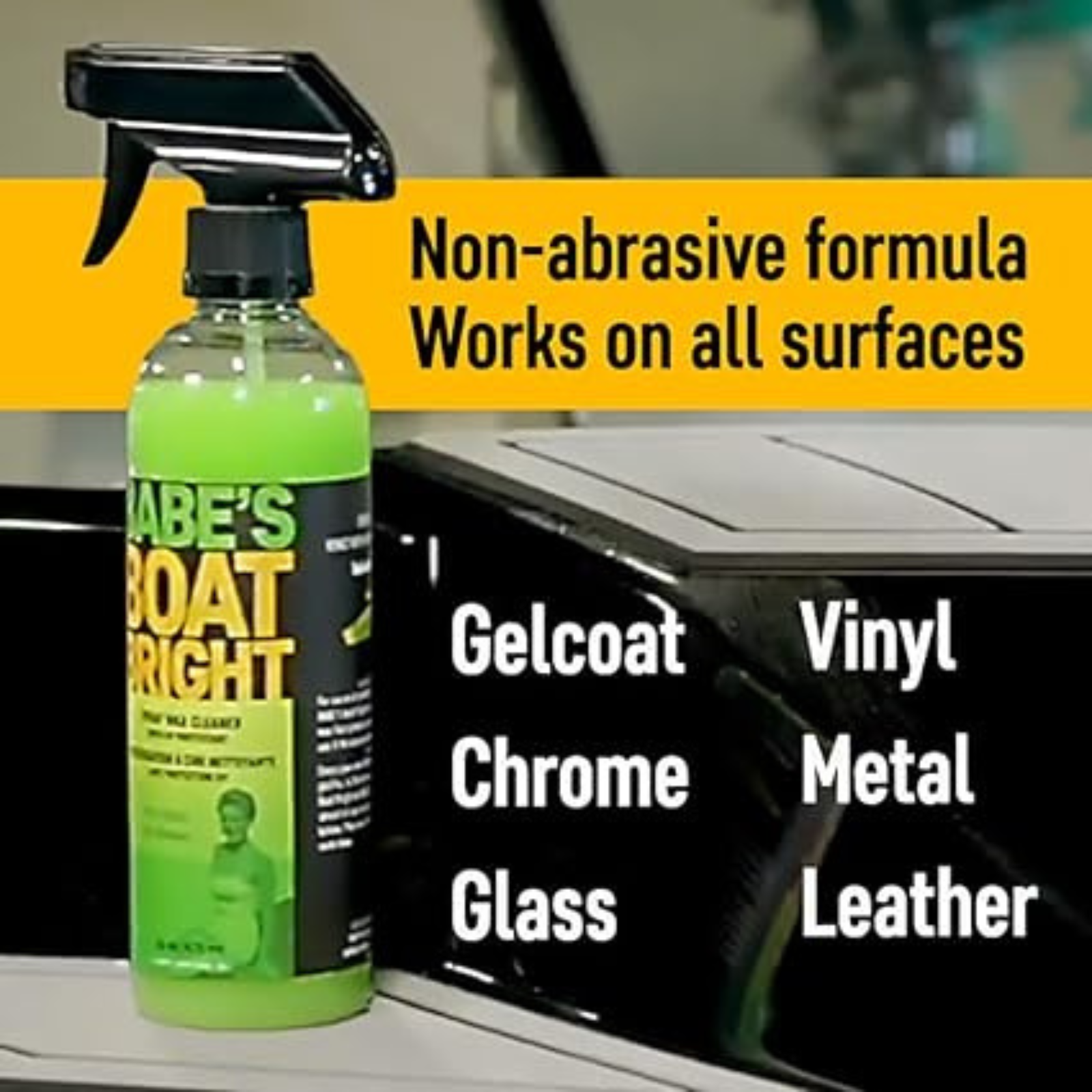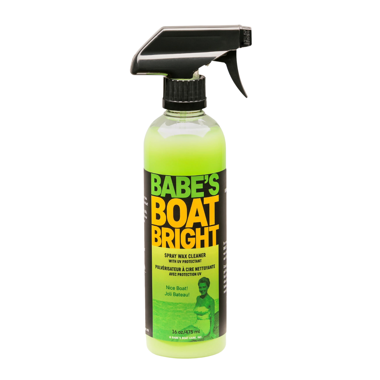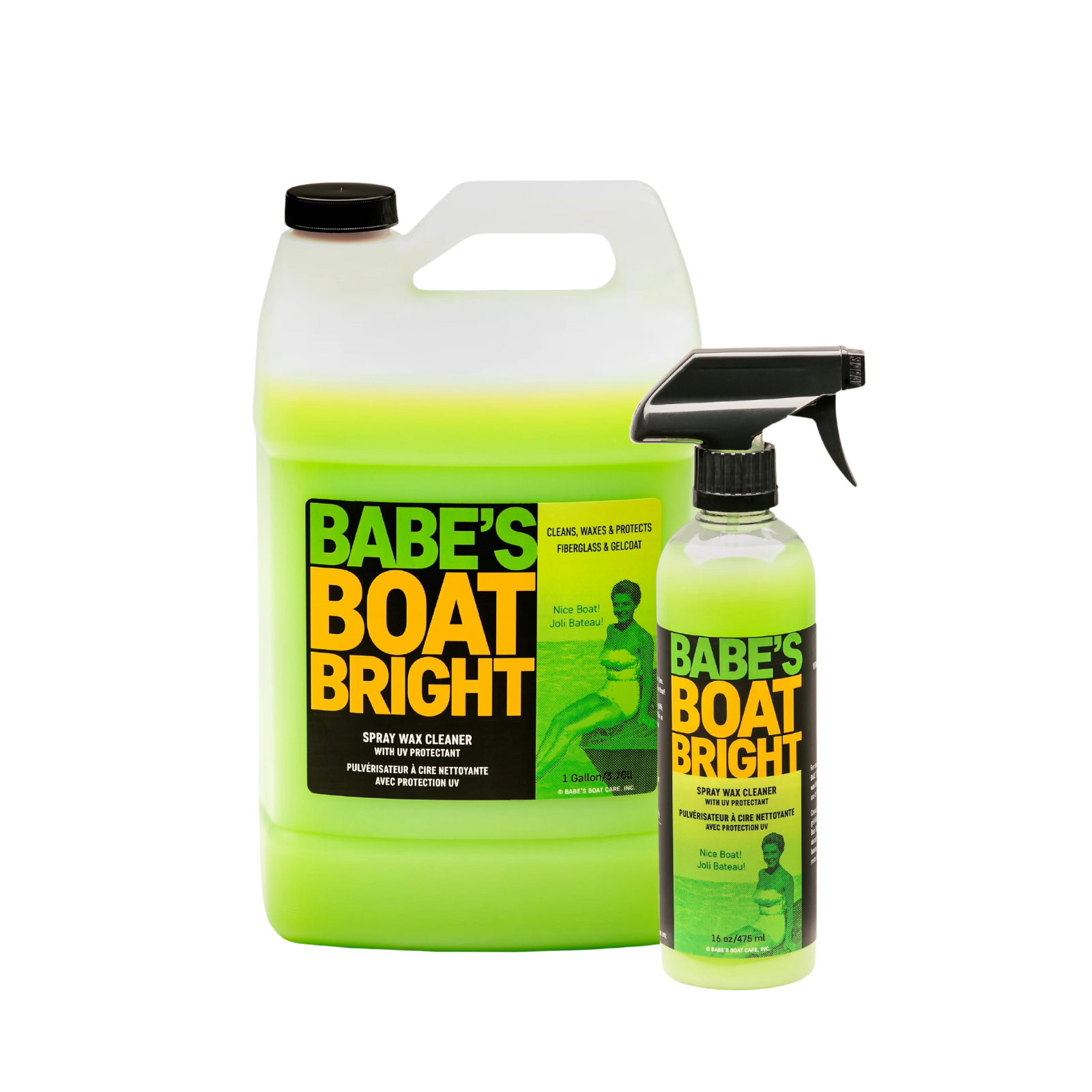BABE’S Boat Bright is a non-abrasive formula designed to clean and protect your boat’s surface. Boat Bright enhances the finish of your boat by applying a light wax surface plus a UV protectant. No pre-washing necessary. Simply spray a light mist on the surface and wipe off with a clean towel. BABE’S Boat Bright can be used on gelcoat, metal, glass or vinyl surfaces.